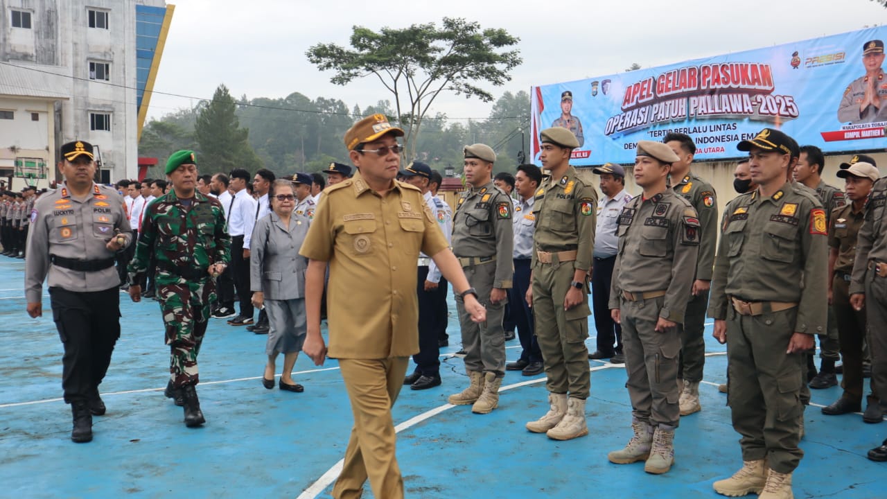 Pengecekan pasukan oleh Bupati Toraja Utara selaku pimpinan apel didampingi Kapolres Toraja Utara AKBP Stephanus Luckyto A.W, S.I.K., S.H., M.Si, Dandim 1414/Tator dan Ketua DPRD Toraja Utara menandai kesiapan Polres Toraja Utara dalam melaksanakan Ops Patuh Pallawa 2025.