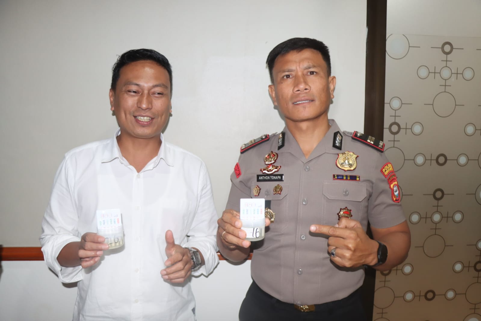 “Hari ini Kita lakukan pemeriksaan urine kepada sejumlah personel secara dadakan. Ada total 65 personel yang menjalani tes urine, dan Puji Tuhan secara keseluruhan hasilnya negatif sebagai pengguna narkoba,” terang Kapolres