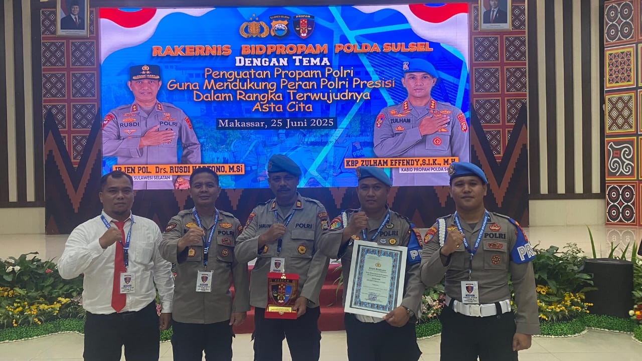 KAREBA, MAKASSAR –Kepolisian Resor (Polres) Toraja Utara kembali menorehkan prestasi membanggakan dalam Rapat Kerja Teknis (Rakernis) Bidang Profesi dan Pengamanan (Bidpropam) Kepolisian Daerah Sulawesi Selatan (Polda Sulsel) Tahun 2025. Kegiatan ini berlangsung di Aula Mappaoddang Polda Sulsel, Rabu (25/6/2025).